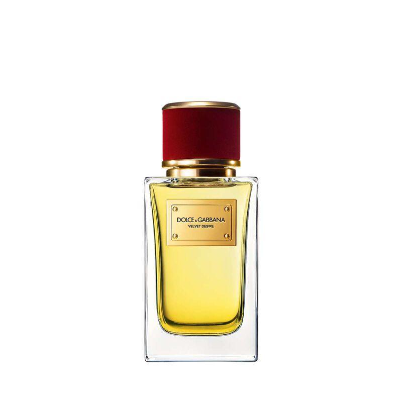 The iconic, weighty glass flacon of the Dolce&Gabbana Velvet Collection is topped with a crimson red velvet-trimmed stopper with golden accents. The flacon of Dolce&Gabbana Velvet Desire Eau de Parfum is also personalized with an engraved golden plate, and comes encased in a black velvet coffret.