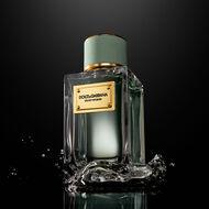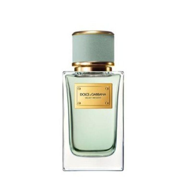 The iconic, weighty glass flacon of the Dolce&Gabbana Velvet Collection is topped with a pastel-green velvet-trimmed stopper with golden accents. The flacon of Dolce&Gabbana Velvet Infusion Eau de Parfum is also personalized with an engraved golden plate, and comes encased in a black velvet coffret.